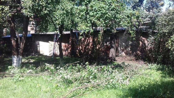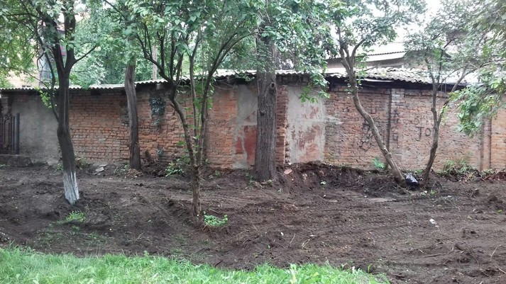Наразі територію музею розчистили від чагарників та самонасіяних кущів і працюють над вирівнюванням стін штукатуркою: