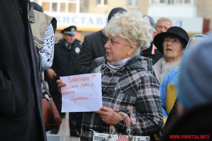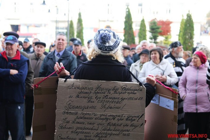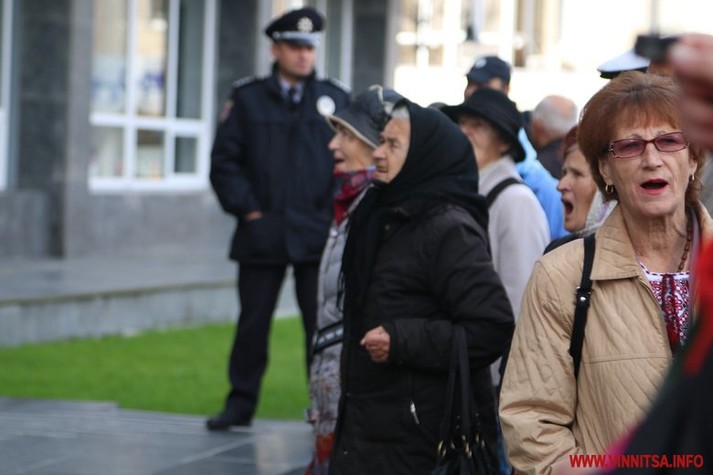 У Вінниці пенсіонери прийшли на мітинг з тухлими яйцями і закидали мерію
