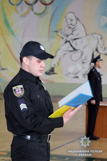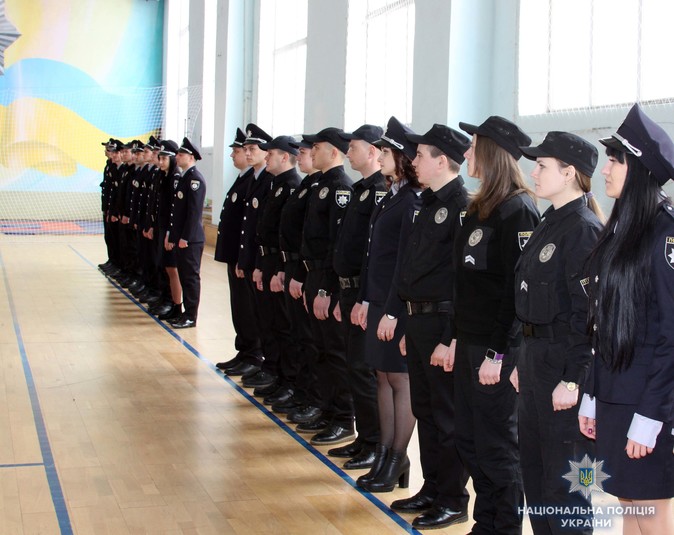 Поліцейські урочисто присягнули вірно служити українському народу, дотримуватися Конституції та законів України, поважати й охороняти права та свободи громадян і з гідністю нести високе звання поліцейського.