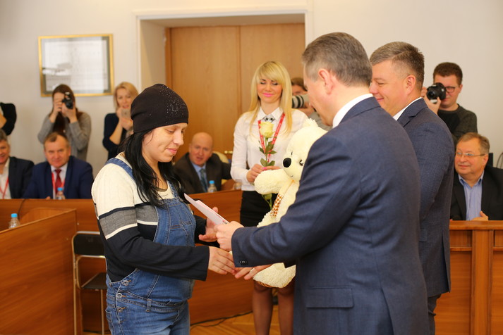 У Вінницькій міській раді урочисто привітали матерів які народили немовлят у Новий рік та Різдво. У ці дні у Вінниці народилось 14 дітей. Родини, де з’явилися діти на свята, отримали коляски, м’які іграшки, квіти та вітальні листівки.
