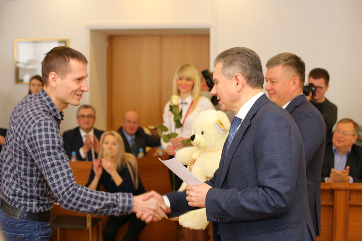 Також у нас є гарна традиція вітати вінничан, які стали батьками в новорічну та різдвяну ночі. У нас цікава статистика: в минулому році народилося на свята 14 діточок і стільки ж в цьому році. Хочу побажати вам та вашим дітям здоров’я, благополуччя, щоб вони достойно росли на радість батькам і були здорові», – сказав міський голова Сергій Моргунов.