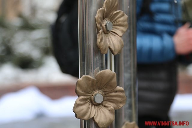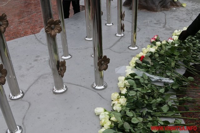«Закликаю всіх в інших містах, зберігайте пам'ять вшановуймо свою історію. Встановлення пам’ятника, це перемога України, це формування нашої свідомості і відродження нашої культури. А Вінниці дуже дякую за меморіал. Вишня – це символ, падаючі квіти це загиблі Герої Небесної Сотні. Одна з квіток це Леонід Полянський – Герой Поділля. Тут є його син», - сказав голова БФ «Пам’яті Героїв Небесної Сотні» Андрій Павленко.