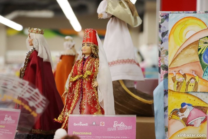 На виставці «Barbie: Пані України» представлені 36 ляльок, які створили 28 майстрів з усієї України. Серед них є й робота лялькарки з Вінниччини.