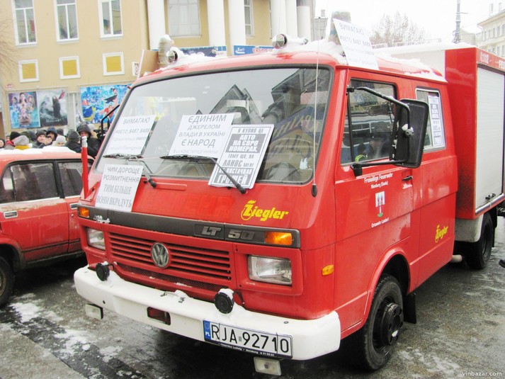 Сьогодні, 20 листопада, у Вінниці активісти влаштували акцію непокори. Учасники ГО «Авто Євро Сила» пригнали під будівлю Обласної держадміністрації кілька старих автомобілів та пожежну машину на європейській реєстрації.