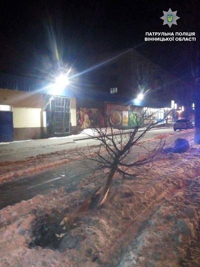 У Вінниці водій наїхав на клумбу, збив дерево і втік