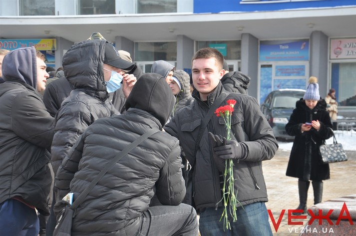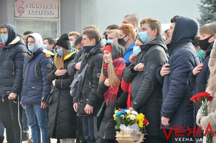 Опівдні на Майдані Небесної Сотні зібрались кілька десятків студентів з гуманітарно-педагогічного коледжу, Торговельно-економічного університету, а також інших вишів міста. Ініціювали акцію молодіжний центр «Квадрат» спільно з Вінницьким гуманітарно-педагогічним коледжем, торговельно-економічним інститутом КНТЕУ та Українським інститутом національної пам’яті.