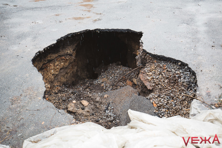 За словами співробітників музею, земля під асфальтом просіла 13 березня. У той момент на цій ділянці стояв автомобіль, який майже потрапив під землю.
