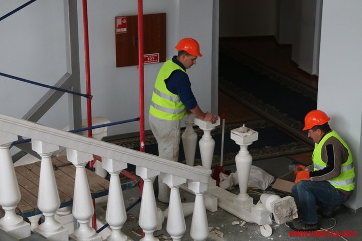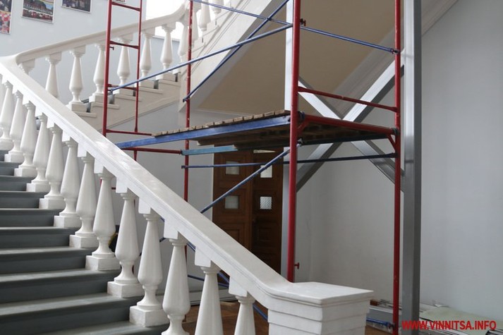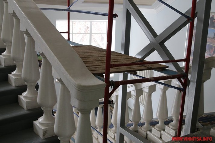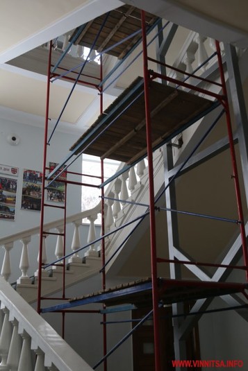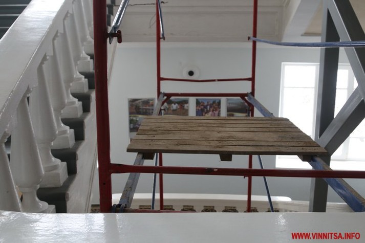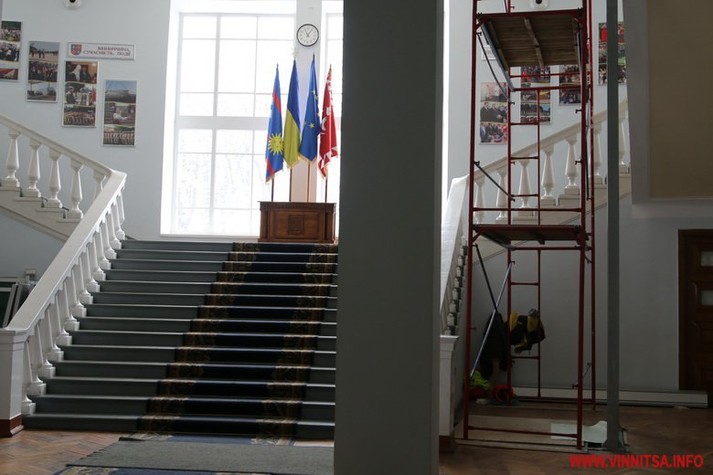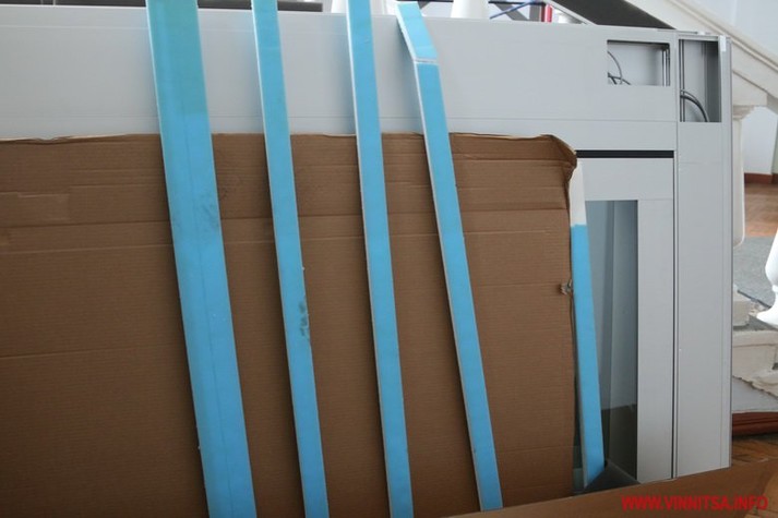 У будівлі Вінницької обласної ради і адміністрації, що на Соборній, 70, встановлюють ліфт. Частину перил демонтують, аби облаштувати вхід і вихід з підйомника на поверхи.