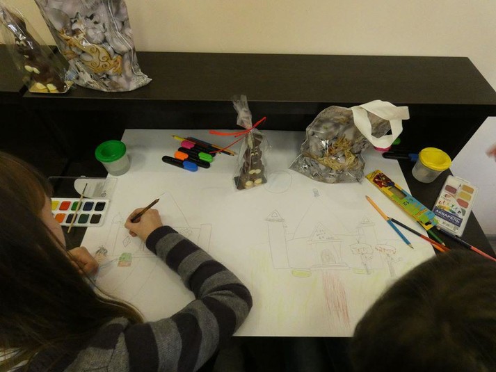 Малювали ж діти упродовж години: зображували новорічні і судові атрибути, казкові храми Феміди і навіть динозаврів. Потім свої роботи подарували суду, а Тетяна Шемета від імені суддів презентувала юним художникам солодкі призи і набори для малювання.