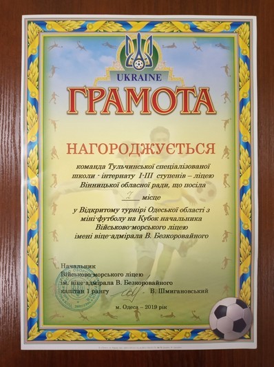 Протягом 5-6 жовтня 2019 року у м. Одесі у Військово-морському ліцеї імені віце-адмірала Володимир Безкоровайного відбувся Відкритий турнір Одеської області з міні-футболу на Кубок начальника військово-морського ліцею.