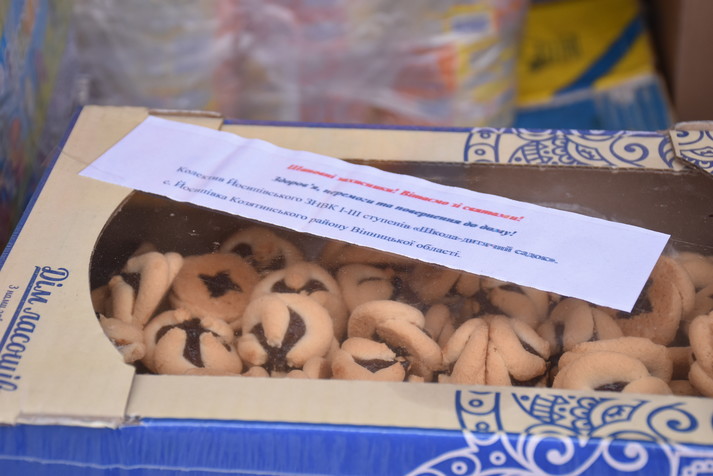 У зону ООС відправили сало (125 кг), молоко (240 л), майонез (200 кг), олію (100 кг), оселедець (30 відер), хрін (50 кг), гірчицю (50 кг). Крім того, у гуманітарному вантажу яблука (400 кг), концентрат фруктовий (200 кг), соки фруктові (300 л), вареники (5500 шт.), лимони (300 кг), калина з цукром.