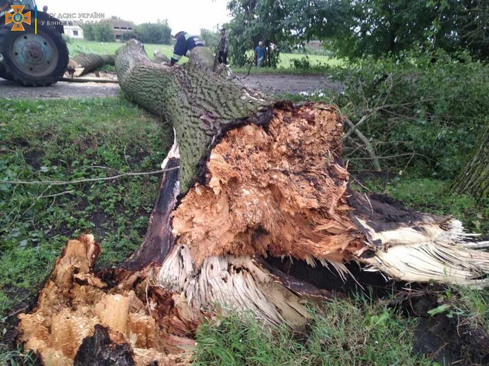 У ніч на 6 серпня Вінниччиною пройшлась негода. Сильний вітер повалив у регіоні чимало дерев. Про це інформує ГУ ДСНС України у Вінницькій області.