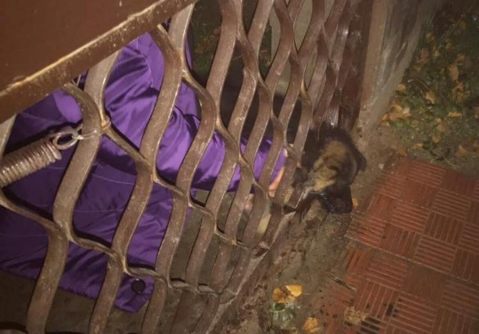 Тварина застрягла головою у решітці паркану. Дістати собаку самостійно господарі не змогли. Рятувальники за допомогою спецобладнання допомогли звільнити чотирилапого з пастки.