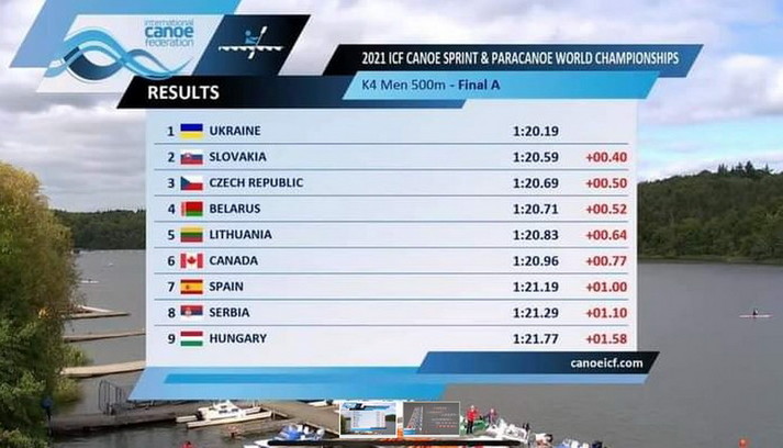 За інформацією відділення НОК у Вінницькій області, дистанцію 500 метрів вони пройшли за 1:20.19 хвилини. Другими фінішували словацькі веслувальники з результатом 1:20.59, що поступились українцям на 0.40 секунди. А третіми стали чехи (1:20.69) з відставанням від України на 0.50 секунди.