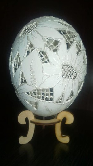 «Цей вид оздоблення яйця також прийшов до мене випадково. Шукала в мережі нові візерунки для витинанок і побачила надзвичайну красу – тонко вирізані, наче мережево, вироби з яєчної шкаралупи. Це ще більш кропітка робота», – зазначила майстриня.