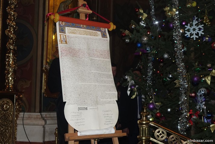 Представили документ, що підтверджує надання українській церкві автокефалії, у Спасо-Преображенському соборі. Служба в храмі розпочалася ще зранку, але Порошенко прибув близько 10:00.