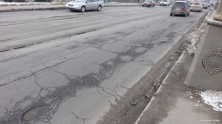 Це відбилося на якості асфальтного покриття. Особливо постраждали ділянки, через які проходять трамвайні колії.