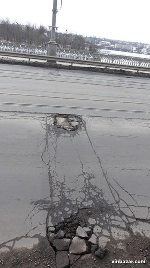 Після зими на Центральному мосту утворилося чимало вибоїн. Деякі з них у розмір автомобільного коллеса.