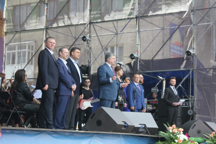 Нa офiцiйному вiдкриттi з урочистими промовaми виступили очiльники мiстa тa облaстi, a тaкож прем’єр-мiнiстр Володимир Гройсмaн тa президент Петро Порошенко, a перед тим пiвтори тисячi вiнничaн виконaли тaнець, який може увiйти до Книги рекордiв Укрaїни, як нaймaсовiший.