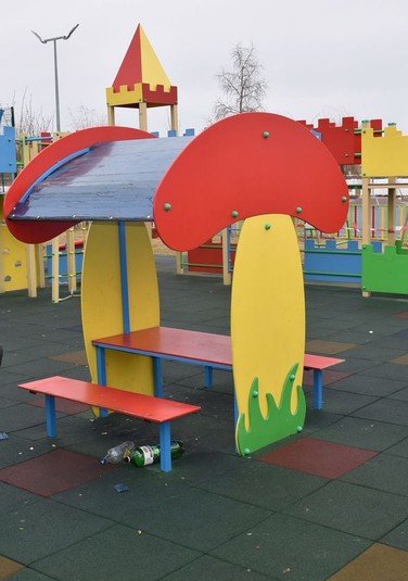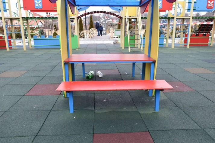 «Своїми розвагами юнаки зруйнували накриття над столиком, розпивали алкогольні напої, після чого розкидали сміття по всьому майданчику, влаштували змагання із боротьби на газоні та перегони на дитячих гірках та парапетах, залишили свої сліди та потертості на покритті, столику та бортиках дитячого майданчика», – перераховують у Тростянецькій селищній територіальній громаді.