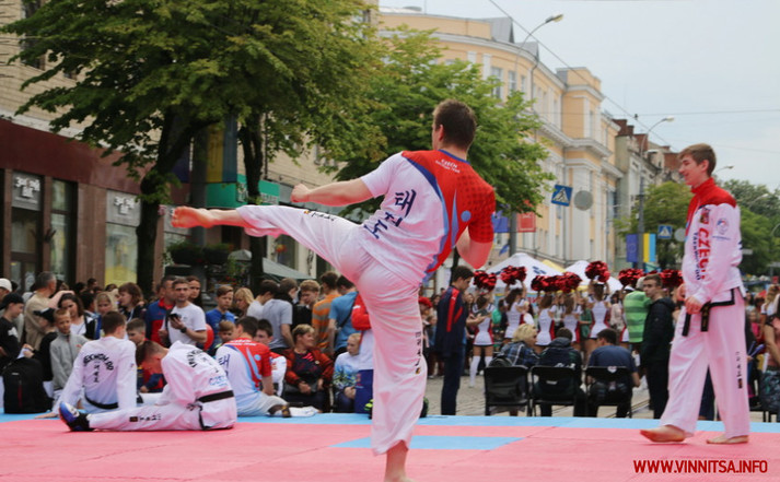 Далі по Соборній проходить фестиваль спорту «Сила міст»: проводять змагання з тхеквондо, спортивні танці. Юні гімнастки показують трюки, а дужчі хлопці відривають штангу від постаменту та підіймають її.