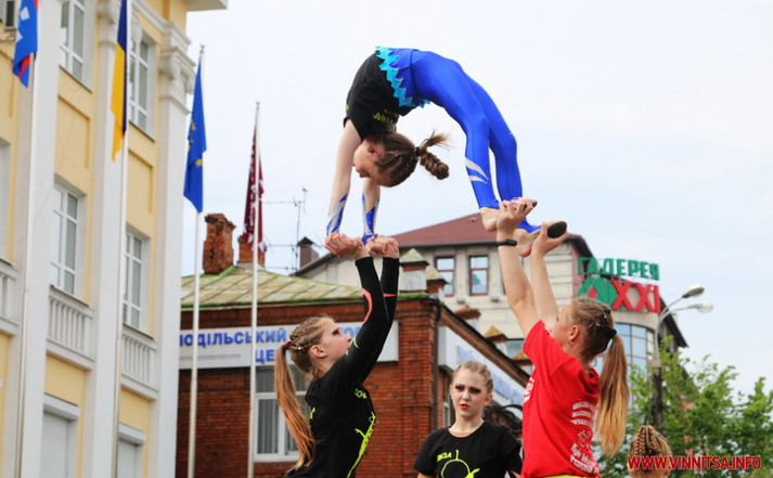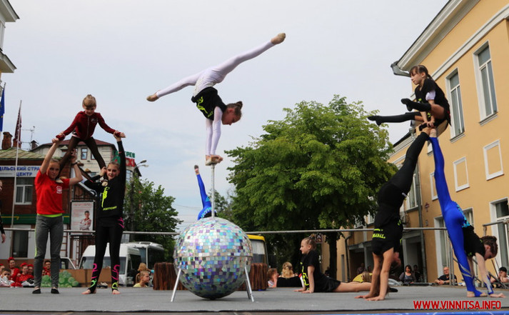 На площі Ліверпуль для вінничан з 14:30 до 20:00 грають музичні оркестри міста, області та України. Публіку запалюють вінницькі степістки.