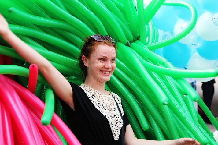 На Соборній, окрім фотоінсталяцій з різними знаковими місцями та подіями, є живі картини та фонтан, у якому стоїть дівчина в квітковій сукні та капелюсі. Великі черги охочих сфотографуватися біля живих скульптур. Також пройшла колона кульок у формі тварин з різних країн Європи.