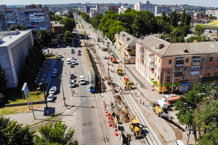 Роботи розпочались у червні. Наразі виконується укладання трамвайних рейок за технологією «оксамитового шляху». Після цього розпочнеться облаштування проїжджої та пішохідної частин. Під час виїзної наради, яка відбулась на об’єкті 4 липня, міський голова Сергій Моргунов звернув увагу на якість та швидкість виконання робіт.