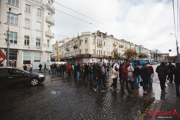 За 20 хвилин до людей вийшов Сергій Левченко, очільник Департаменту енергетики, транспорту та зв’язку, проте у цей момент мітингарі через таке тривале очікування, з вигуками «Ганьба!» вирушили на вулицю, щоб знову перекрити дорогу, що викликало невдоволення у пасажирів громадського транспорту, які виходили з тролейбусів та трамваїв, а дехто з них підходив до мітингувальників та просив «вирішувати свої проблеми не на дорозі». Натомість останні зазначали, що «саме через таких (противників акцій з перекриттям дороги – авт.) нічого не робиться» і «якщо у вас все добре – йдіть звідси, а як ні, то приєднуйтесь». Врешті, за спостереженнями Vежі, з усіх перехожих до акції приєдналися двоє.