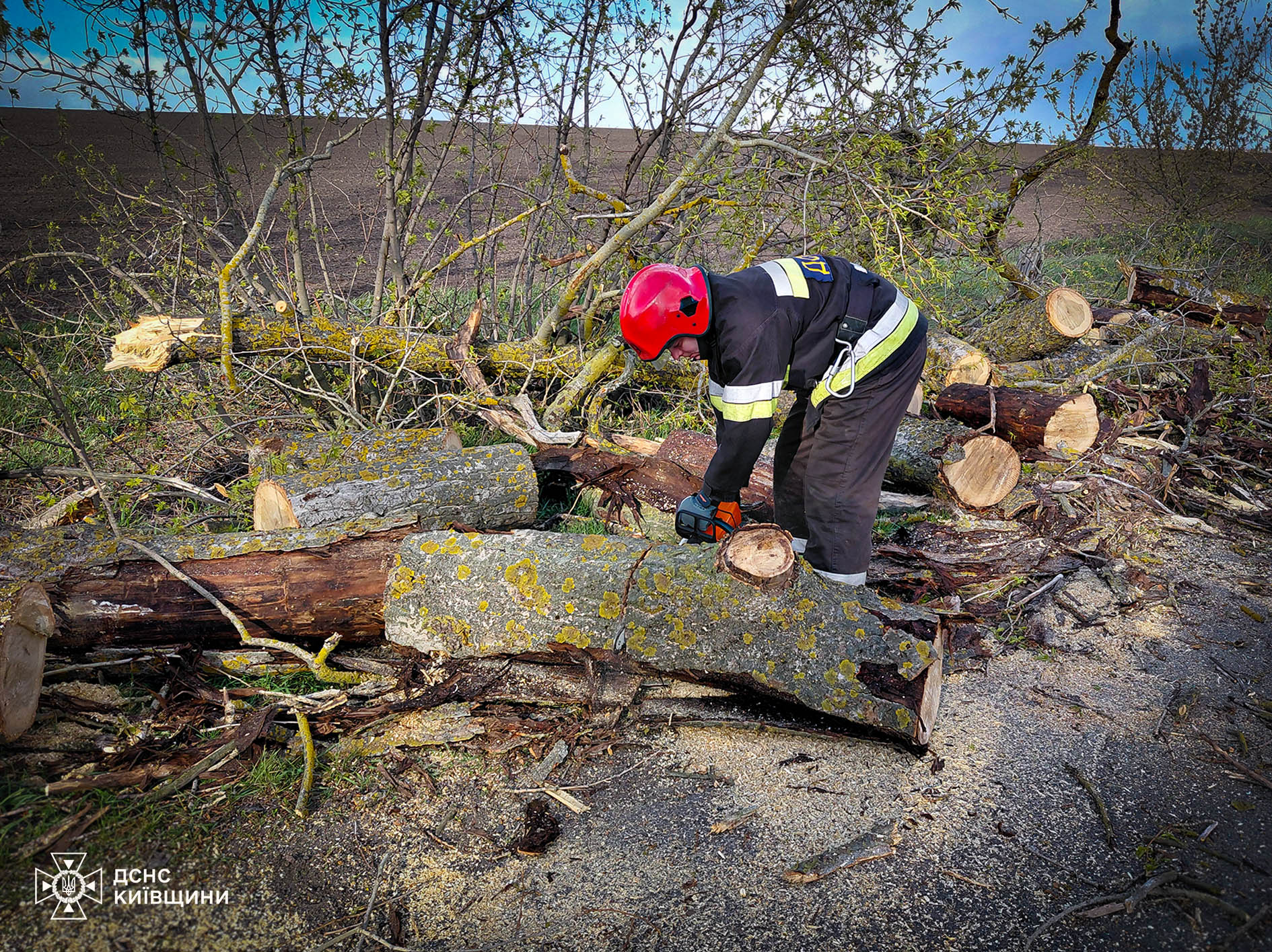 На Київщині падіння дерев спричинило пожежу та ускладнило рух транспорту. Наслідки подій ліквідовано.