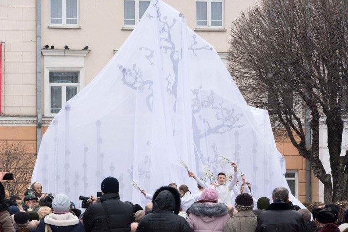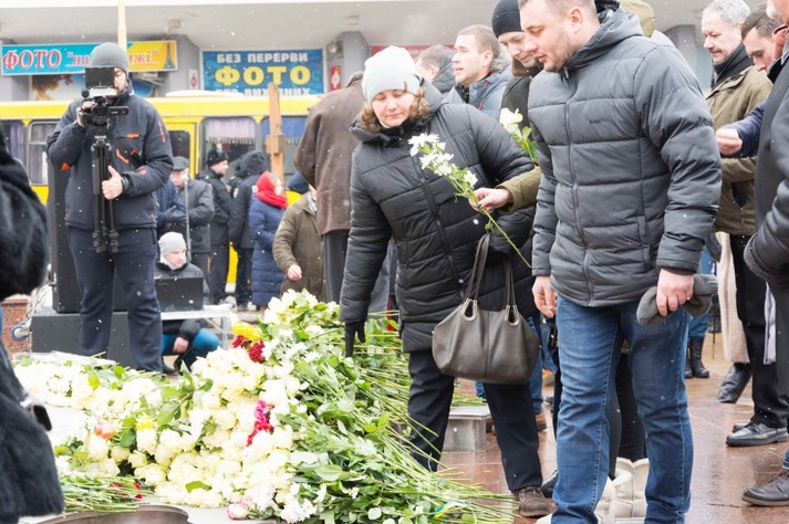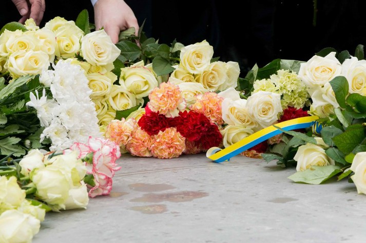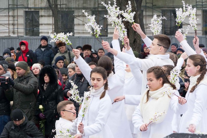 Наприкінці присутні покладають білі квіти до пам'ятника. Їх принесли як символ чистоти душ.