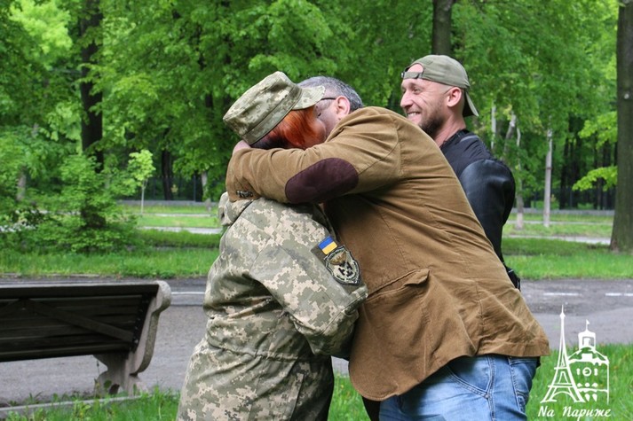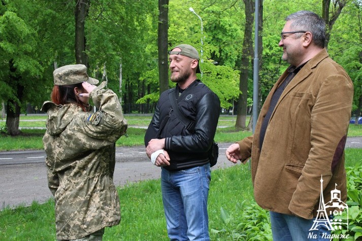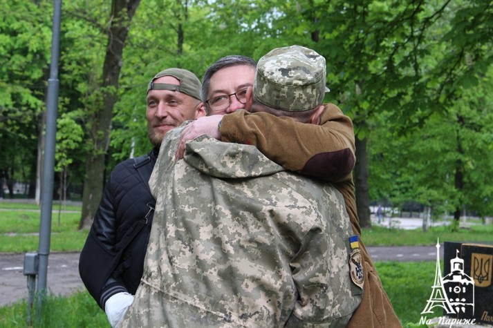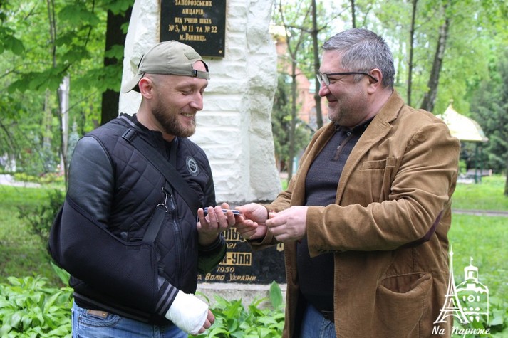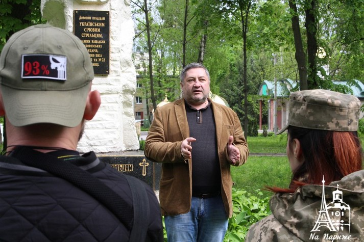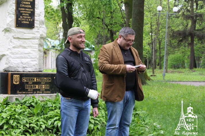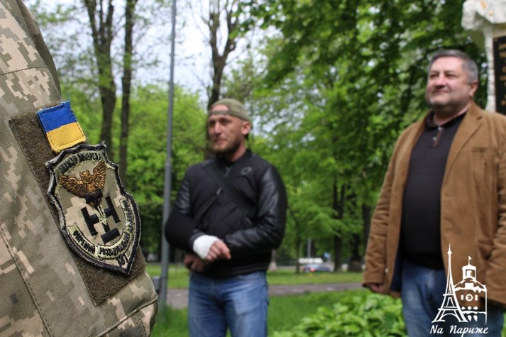 Представник Спілки учасників бойовий дій та АТО «Українська військова організація» на Вінниччині Олександр Гром та лідер УНА-УНСО Сергій Чумак відзначили бійців у символічному місці - біля Могили Січових Стрільців та вояків ОУН-УПА.