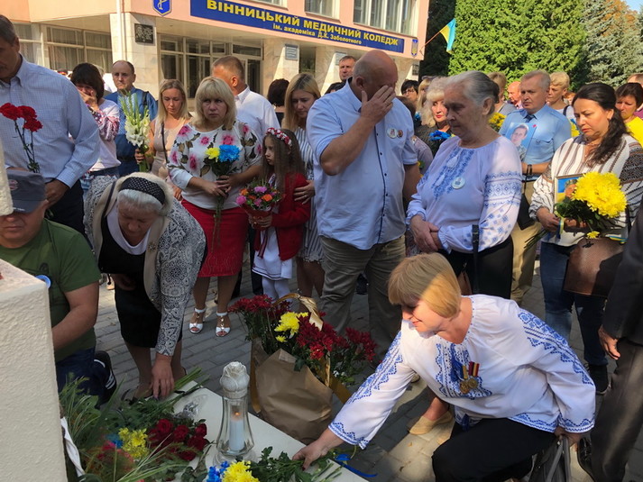«Нехай пам'ять про них ніколи не вмирає. Наші хлопці ніколи не ховалися за чужі спини і ціною життя захищали країну», - крізь сльози говорить мама випускника медколеджа Дмитра Герасимчука, який загинув в 2014 році.
