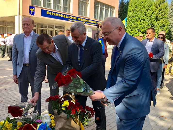 «Ми у Вінниці не випадково. Спільно з президентом Академії медичних наук та з колегами взяли участь у відкритті пам’ятника медикам, які загинули рід час революції Гідності та участі в АТО і ООС. Надзвичайно зворушлива подія. Вперше в Україні такий пам’ятник відкрито нашим Героям», - зазначив директор НІССХ ім. М.М. Амосова Василь Лазоришинець.