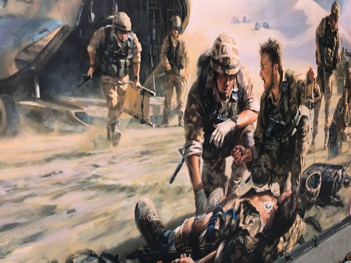 На інтерактивній стелі в слайдах зображені світлини та прізвища лікарів, медсестер та волонтерів, які загинули під час АТО та ООС.