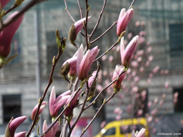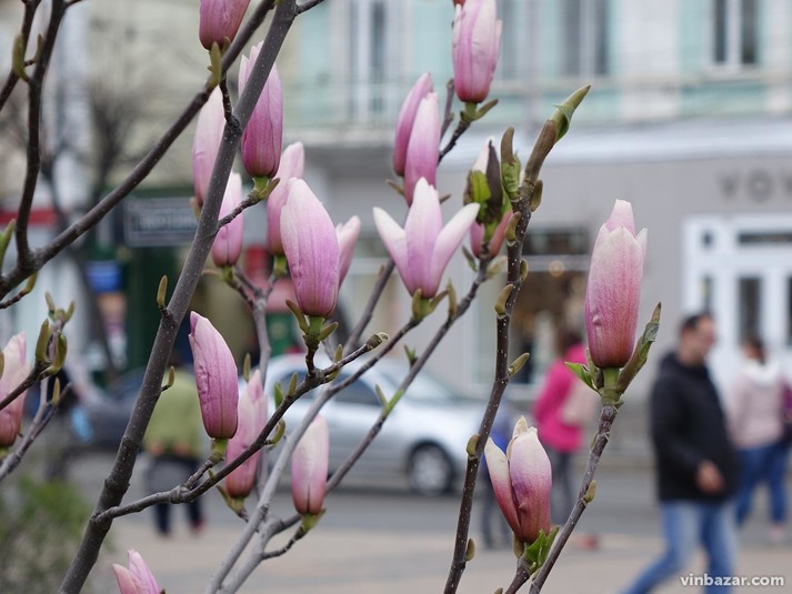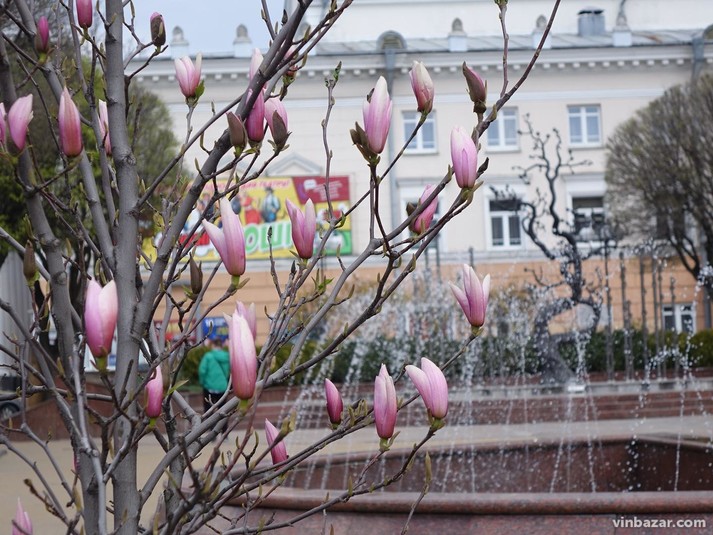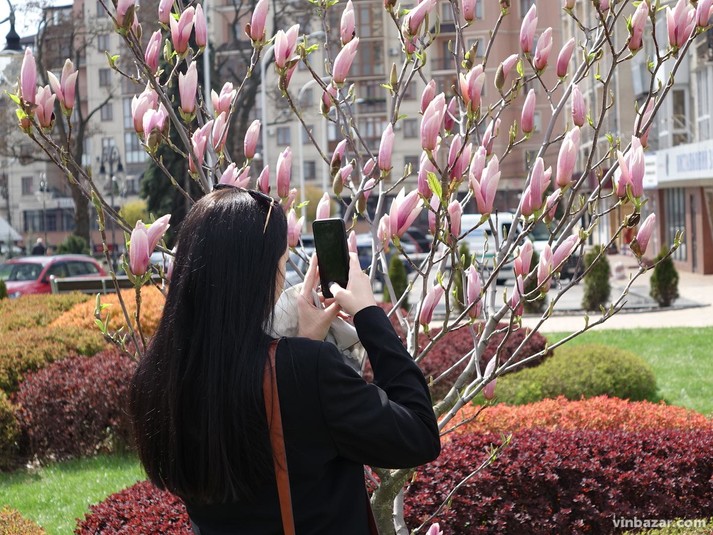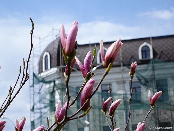 Завдяки весняному потеплінню у Вінниці розцвіли магнолії. Дерева у біло-рожевих квітах радують вінничан та гостей міста запашним ароматом та привабливим виглядом.