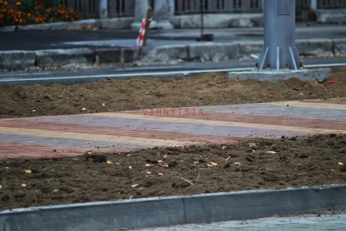 Нині тут будівельники звершують вимощування тротуарної плитки вздовж бульвару.