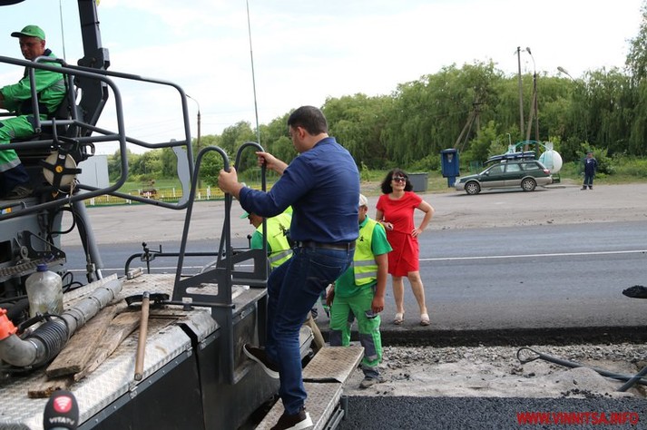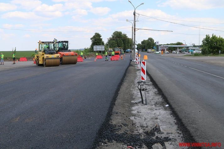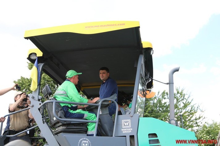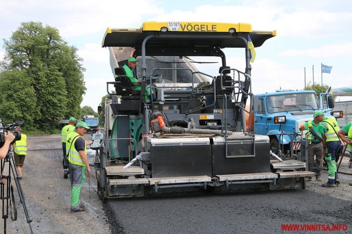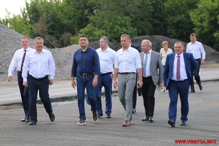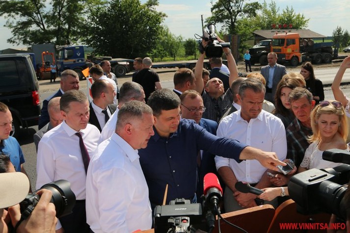 На Вінниччину прем’єр прибув по обіді. В регіоні протяжність дороги складає 185 кілометрів. За словами керівника обласної Служби автомобільних доріг Ігоря Корольчука, оновлення ділянки від кордону Вінницького району до Хмельниччини планують завершити в жовтні – це близько 54 кілометрів. На середній поточний ремонт витратять 1,2 мільярди гривень.
