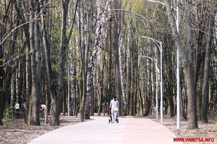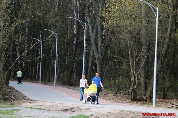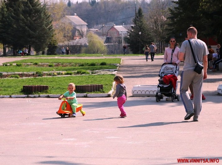 Одні їздять на велосипедах, інші просто прогулюються. Багато мам з колясками.