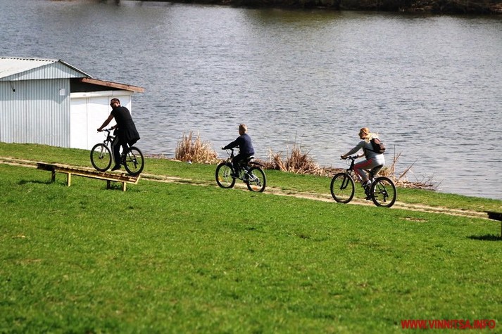 Останній тиждень стовпчики термометрів у Вінниці сягають 20 градусів тепла, тому багато містян проводять свій вільний час саме на природі. Одним з улюблених місць для городян є Вишенське озеро. На вихідні тут ніде й голці впасти.