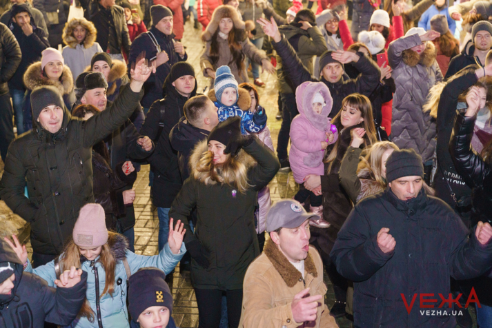 Як і раніше, на головному символі міста – Вежі Артинова – показали лазерне шоу під оплески та захоплені вигуки вінничан. А вже за тим, відкорковуючи шампанське, містяни прямо на площі зустріли 2020-ий рік.