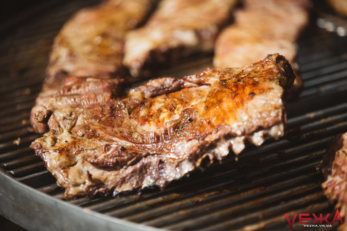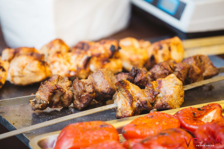 Передусім про м’ясо: тут його багато і в різному вигляді. Свинина, телятина і баранина, шашлик і ковбаси, сосиски в тісті та на грилі й звісно – «соковиті» шматки сала.