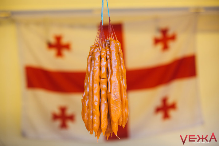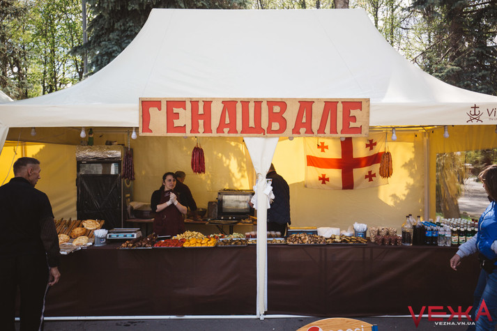 Без вина не могли обійтися й грузини з ятки під назвою «Генацвале»: вони також продають чачу (25 грн. за 100 грамів), хачапурі за 30 гривень (з м’ясом та сиром), чурчхелу за 30 гривень різних смаків. Одна з найдешевших яток на фесті, здається.