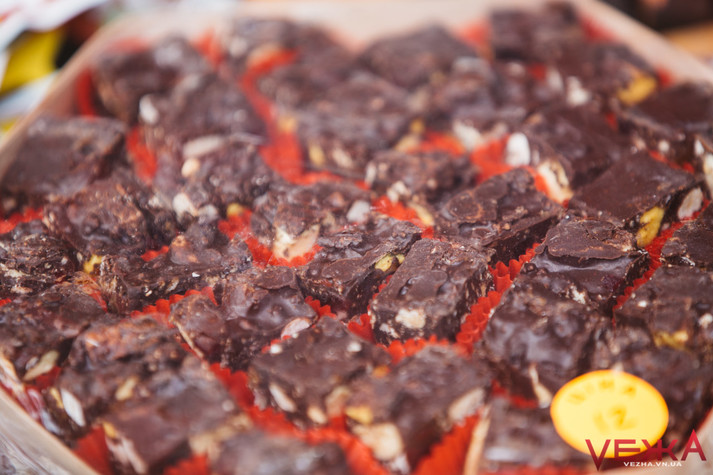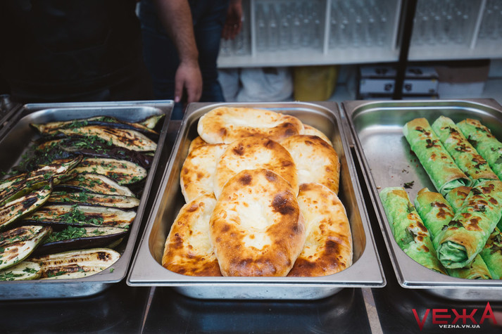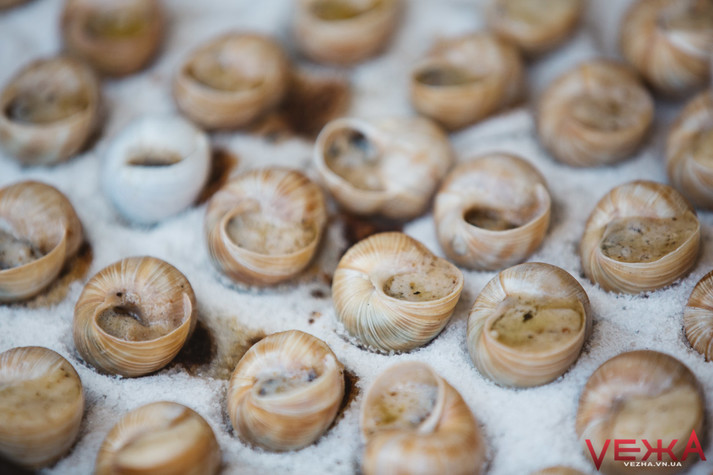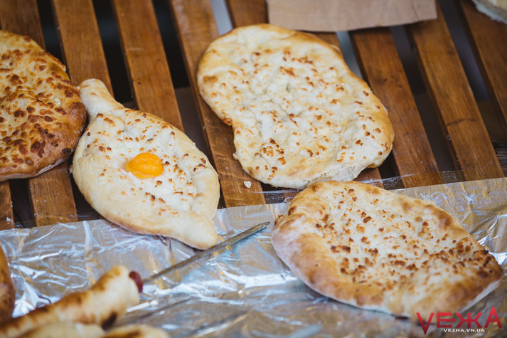 Трохи далі в ятці «Генацвале» наливають чачу і вино, пригощають чурчхелою і продають хачапурі за 30 гривень, неподалік – пахне козиний сир в шайбах і кульках, а ще за пару метрів – на таці з сіллю розляглися равлики з горгонзолою.