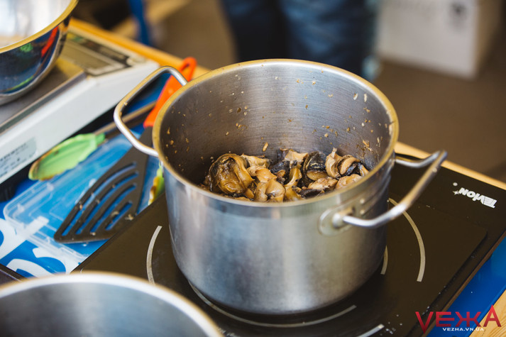 Канапки – по 15 гривень, риба – по 20 за паперовий пакетик, поруч варять мідії в мушлях – по 30 гривень за 100 грамів: це десь три мідії.