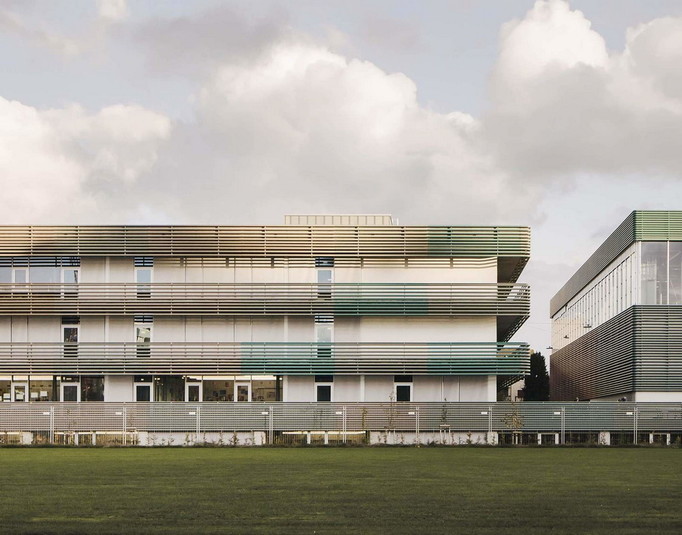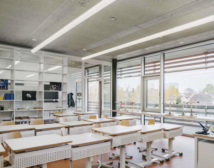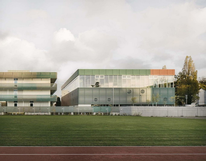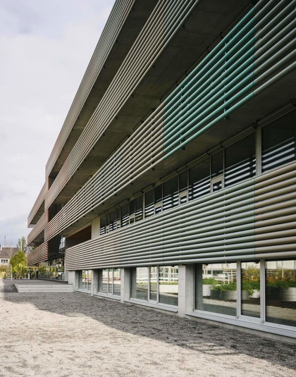 У відповідь на значне зростання населення влада невеликого містечка Альшвіль (Швейцарія), яке майже зливається з Базелем, оголосили конкурс на будівництво школи, яка розрахована на 600 дітей. Виграла конкурс студія BUR Architekten. Вона здійснила проект, який являє собою дві будівлі, з'єднані критим переходом.