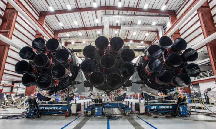 Глава SpaceX опублікував фотографії майже повністю зібраної ракети надважкого класу Falcon Heavy. Вона складається з трьох перших ступенів Falcon 9, кожна з яких повернеться на Землю після польоту. Про це Ілон Маск написав у своєму Twitter.