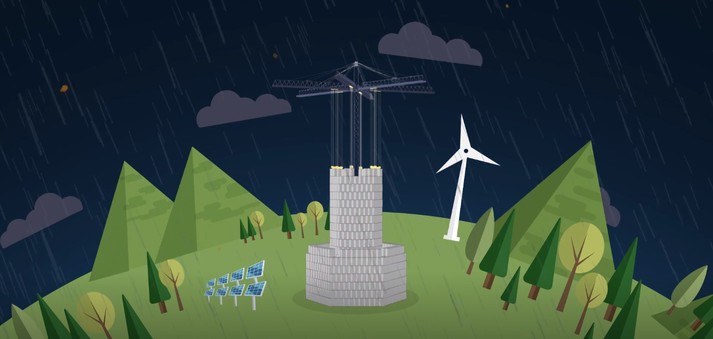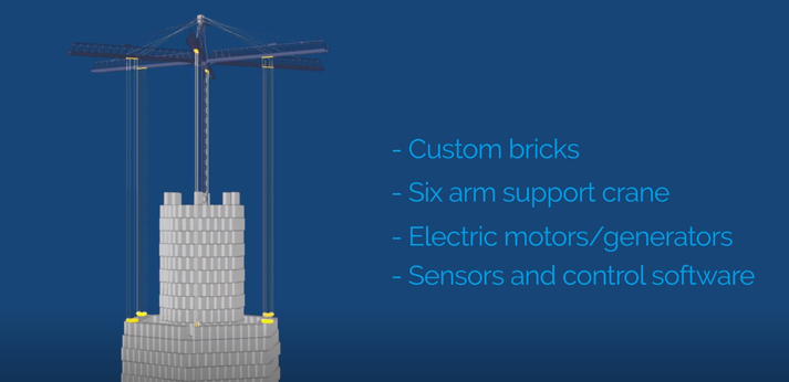 Якщо вітряки або сонячна ферма виробляють більше енергії, ніж потрібно споживачам в поточний момент, то автоматичний кран може цю енергію використовувати для підйому гігантського блоку вагою 35 тонн.