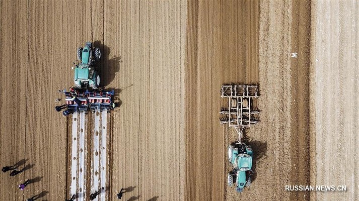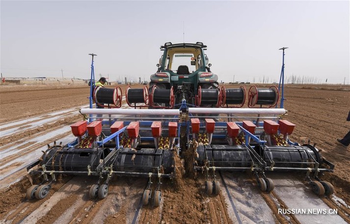 У Китаї безпілотні трактори обробляють бавовняні поля в волості Яха у повіті Куче (Північно-Західний Китай).
