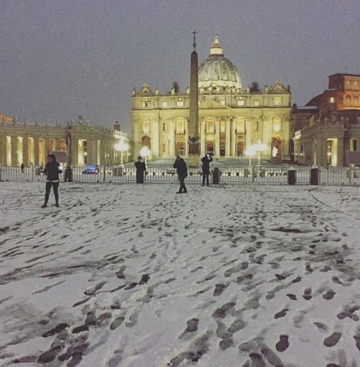 Минулої ночі стовпчики термометрів дійсно опустилися в італійській столиці трохи нижче нуля, повністю підтвердивши прогнози місцевих синоптиків. Снігопад в італійській столиці і на узбережжі Тірренського моря поблизу Риму почався близько вночі і вже зранку сніговий покрив вже досягав у багатьох місцях 3-4 сантиметрів.